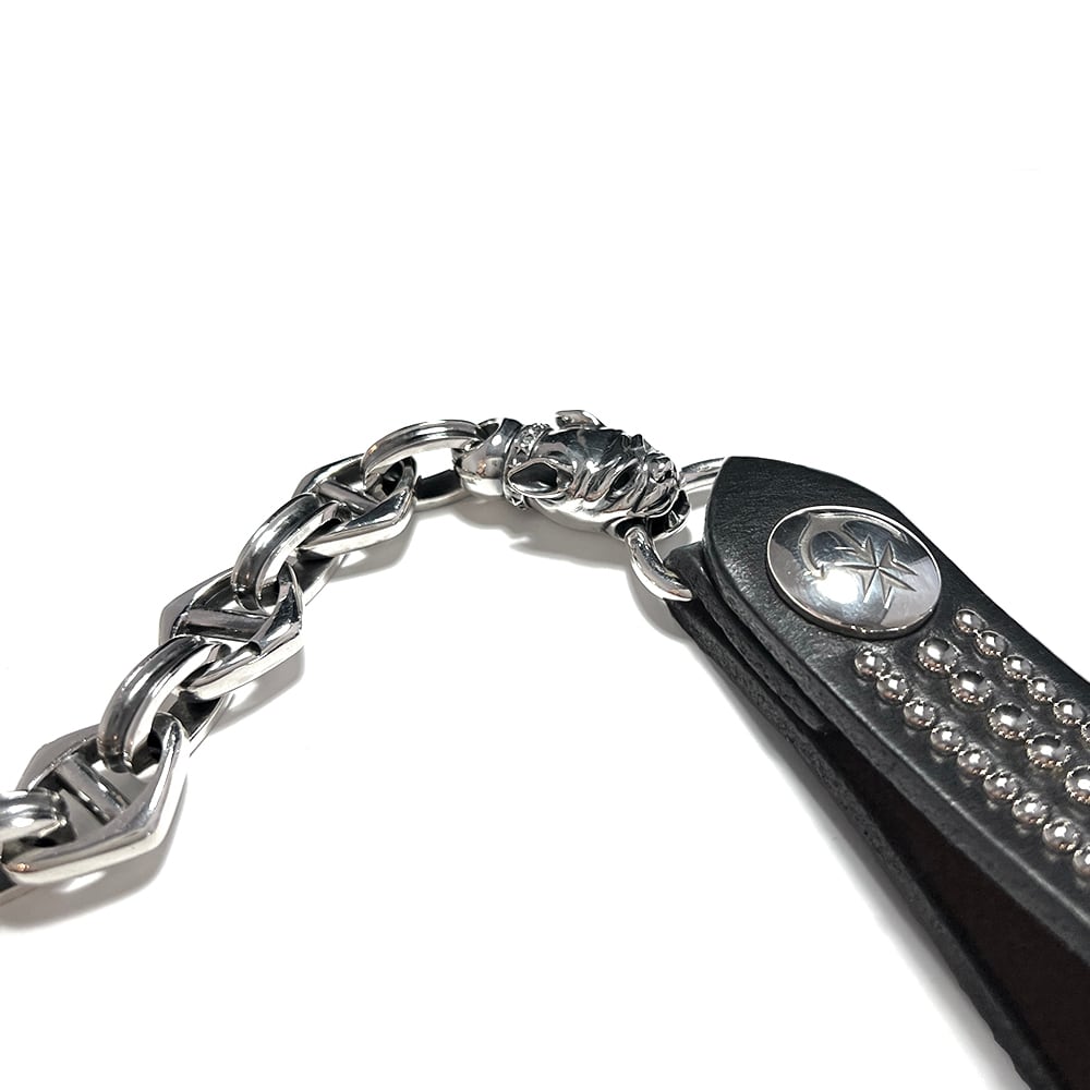 ウォレットチェーンのリンク部分は菱形のアンカーチェーンを連結させたもので、こちらもシルバー925を使用しています。