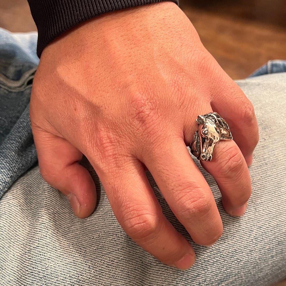 精巧に表現された馬の鬣や尻尾は、ご着用時にその存在感を一層引き立てます。
