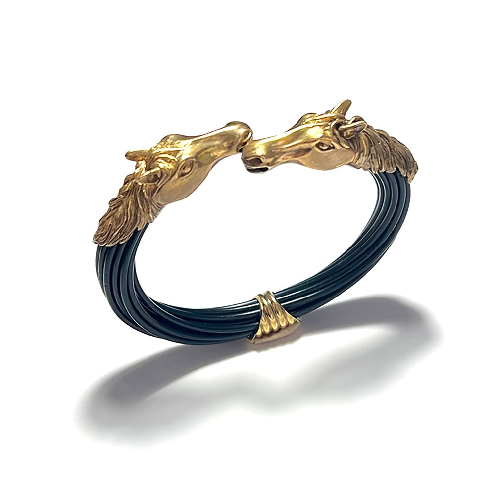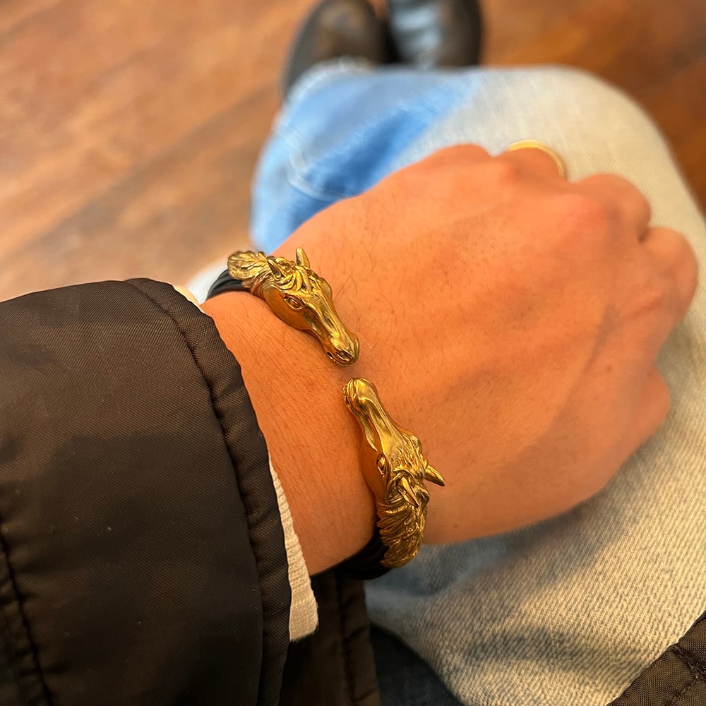 某ジュエリーブランドのモチーフの元となったと言われている精巧な馬の造形が魅力のバングルです。