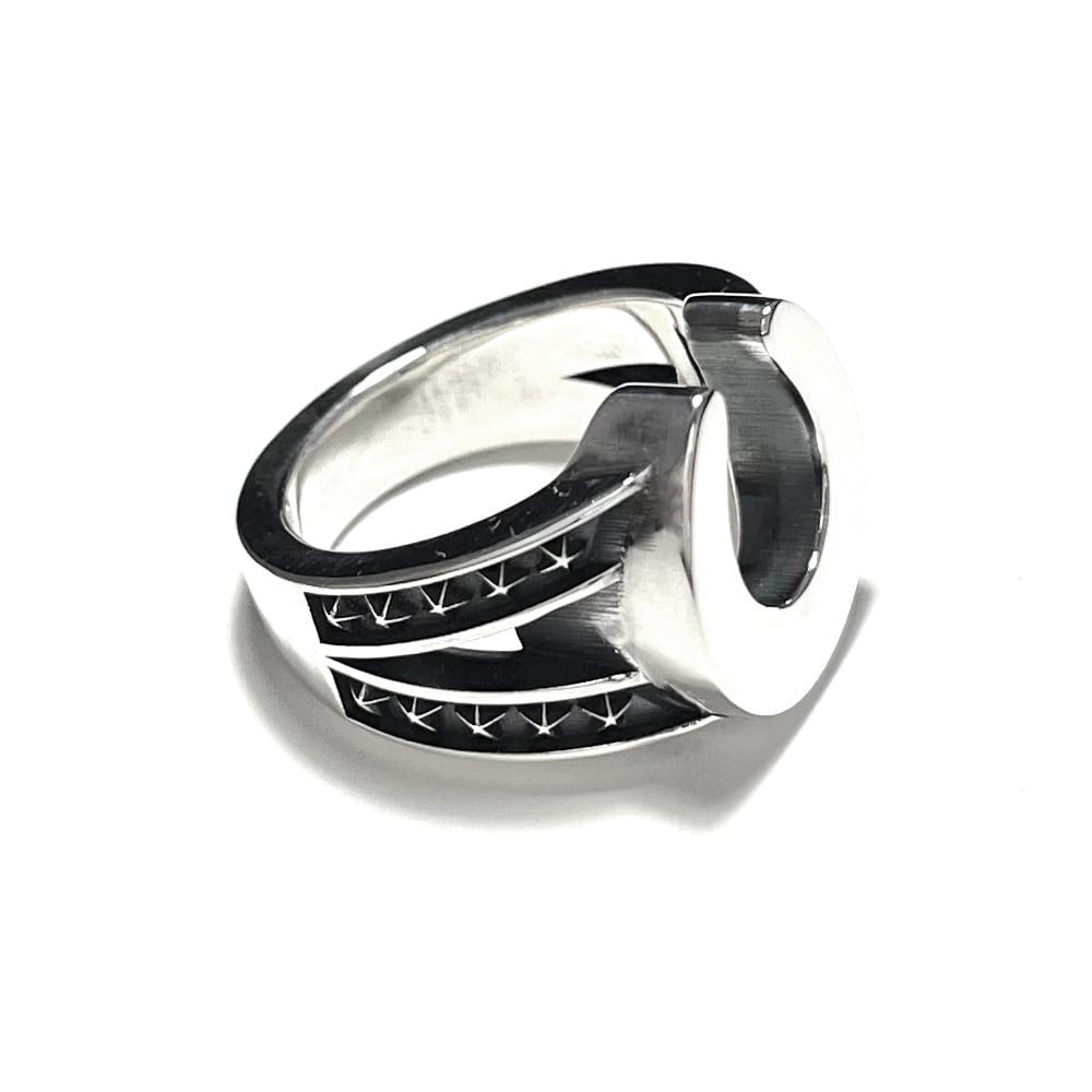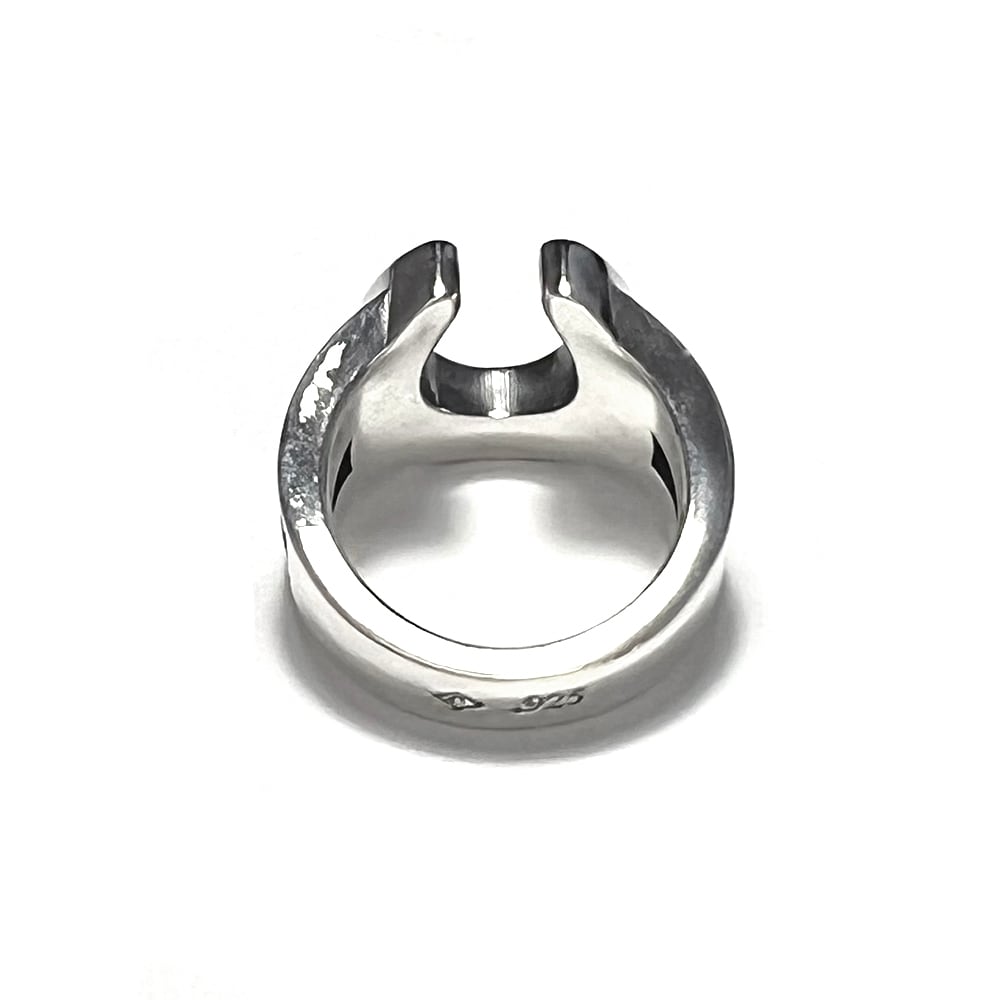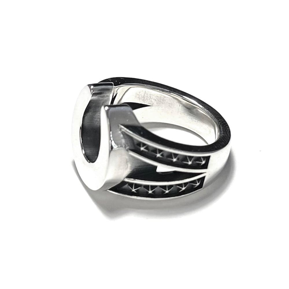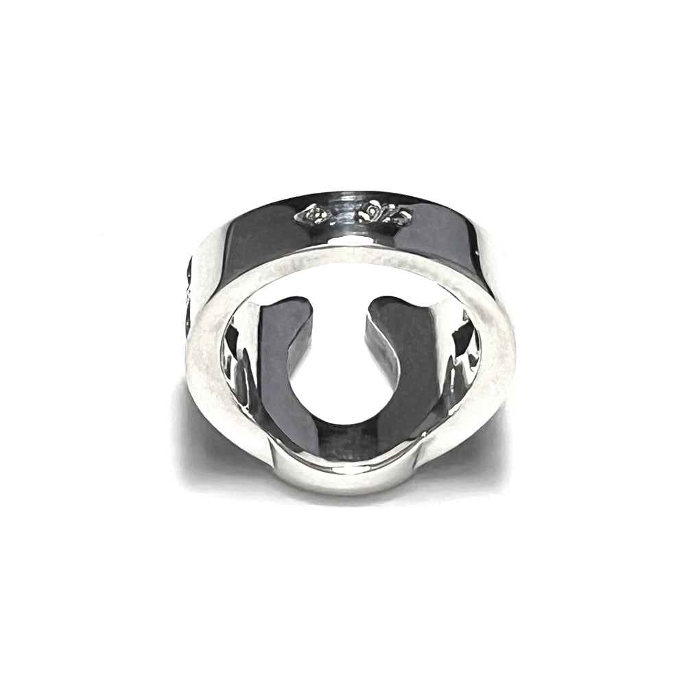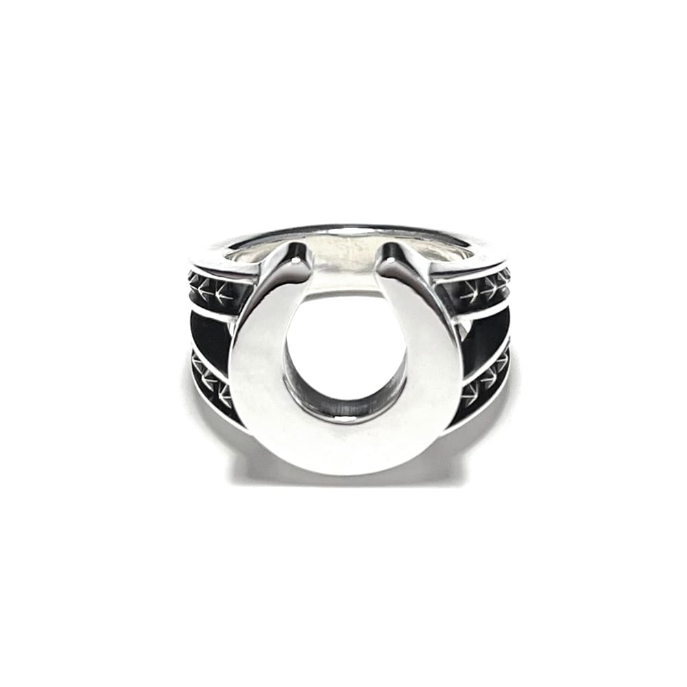 このリングは、ホースシュー(馬蹄)をモチーフにしたデザインが特徴で、男性の指元をスタイリッシュに飾ります。