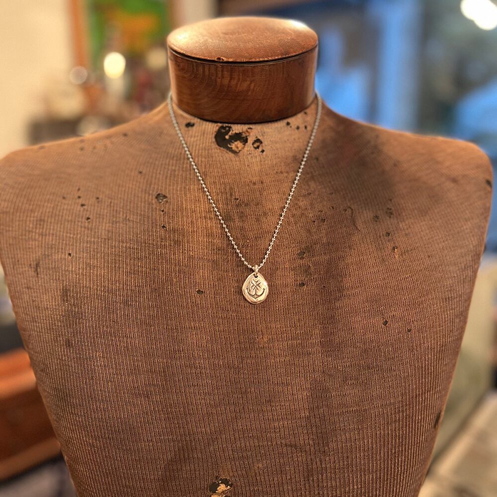 ティアドロップ型のペンダントにブランドロゴであるアンカーが彫刻されています。