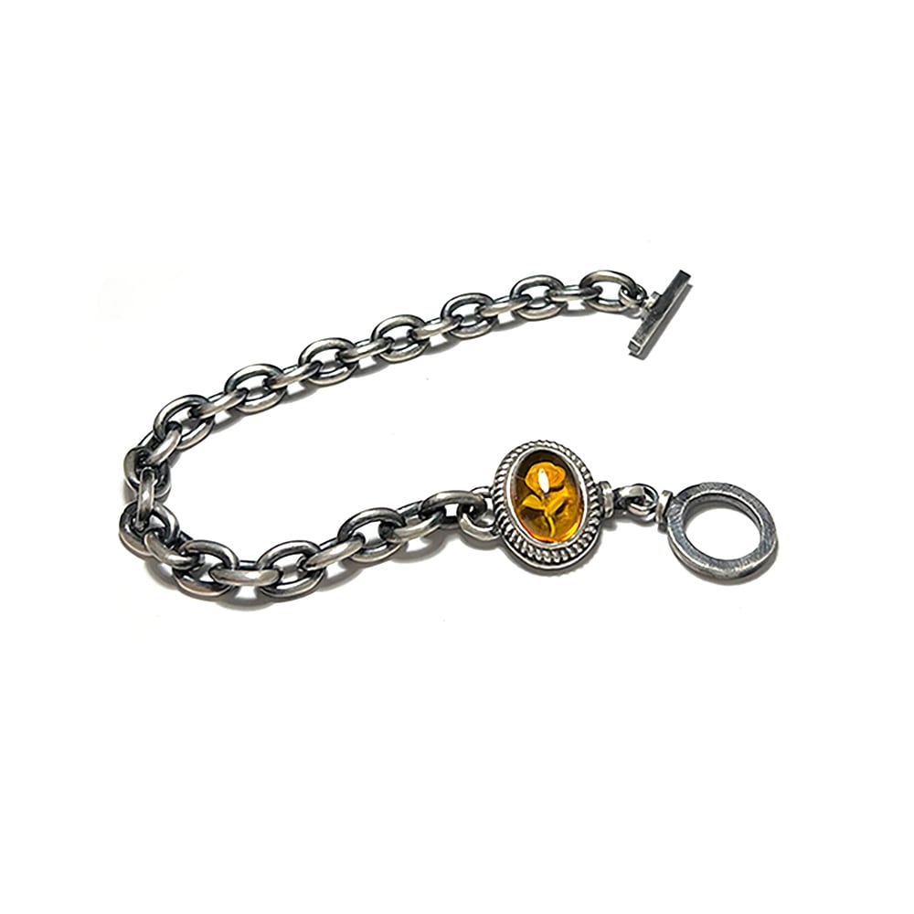 シンプルながらも洗練されたデザインが魅力のcasta/カスタの琥珀を使用したチェーンブレスレットになります。